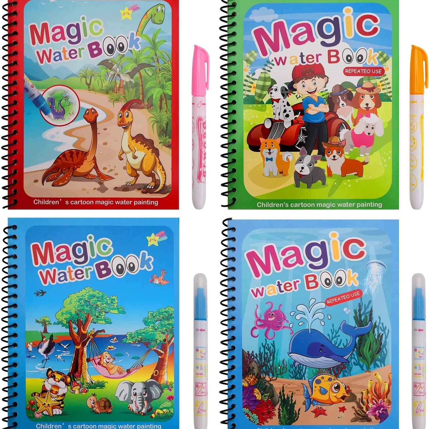 • Your child can easily use it, just add the water on our special pen. Then kids can draw by themselvers. After 5-10 minutes for drying, the kids can paint it again. Please feel free to find us if you have any problem for this magic water coloring book set.